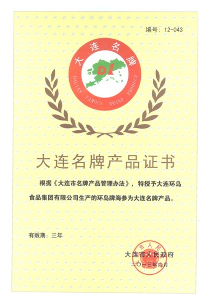 Çì×£»£»£»£»£»£918²©ÌìÌÃÅÆº£²Î±»´óÁ¬ÊÐÈËÃñÕþ¸®ÊÚȨΪ¡°´óÁ¬ÃûÅÆ²úÆ·¡±